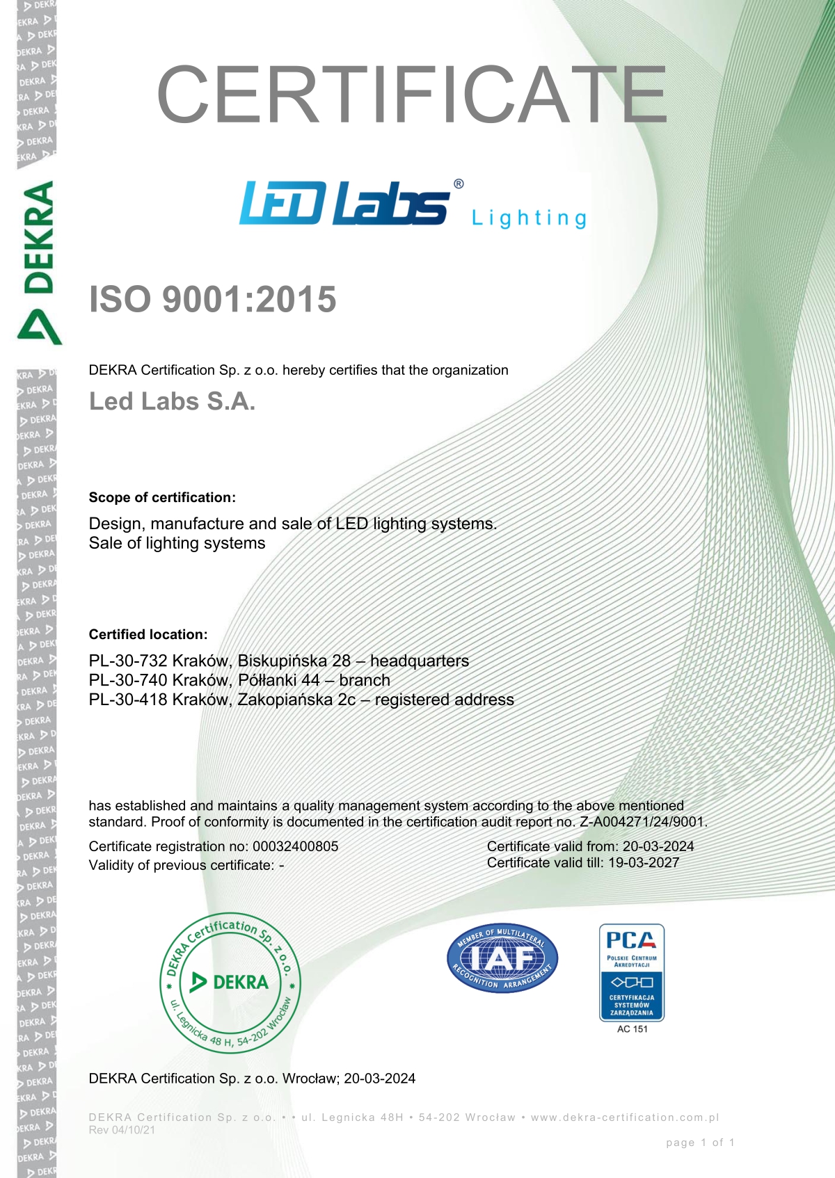Z przyjemnością informujemy, że LED Labs S.A. uzyskała certyfikat ISO 9001, potwierdzający nasze zobowiązanie do doskonalenia jakości produktów i usług.